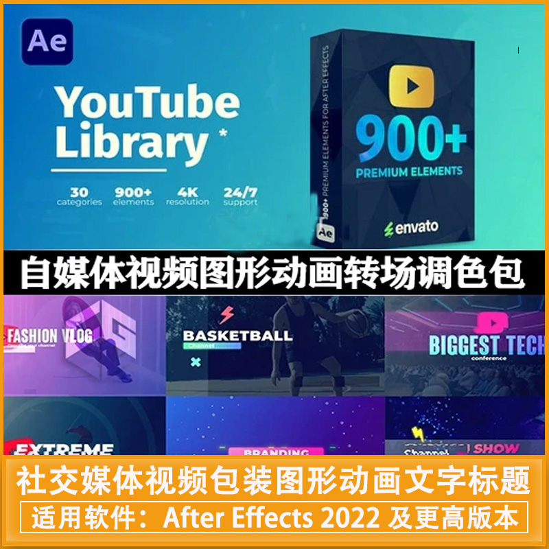 专为社交媒体提供一整套视频包装的视觉元素。包含超过900个高质量的动画元素,帮助用户为自己的社交媒体频道创建独特且专业的视频内容。这个AE模板非常适合想要提高视频质量、吸引观众的创作者。