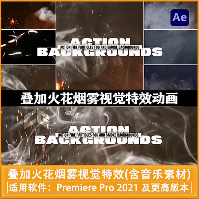提供15个火花烟雾背景叠加视觉特效,支持4K分辨率(3840×2160),30帧。它非常易于定制,渲染速度也很快。