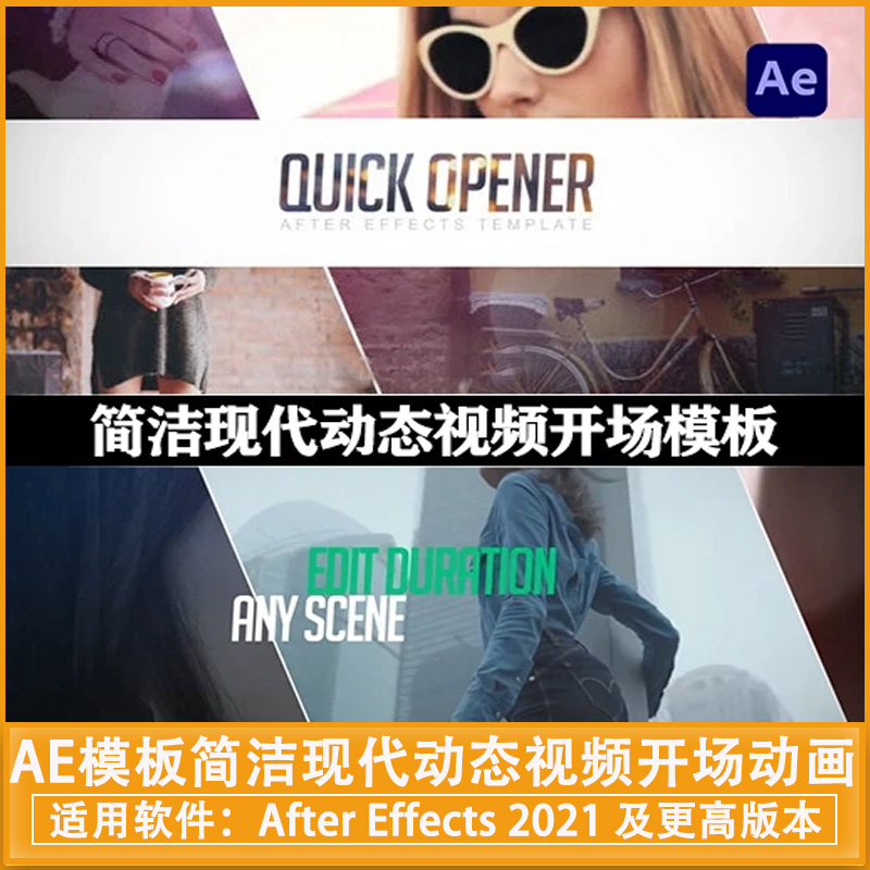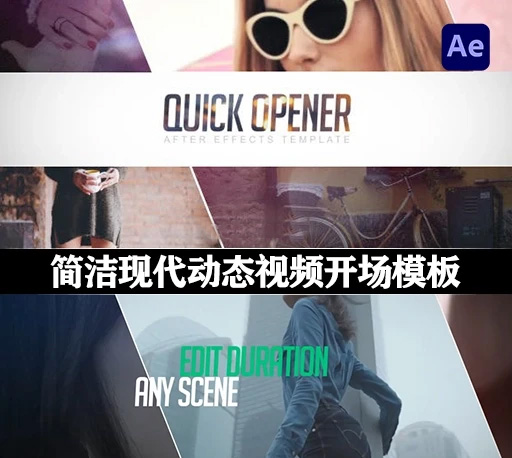 适用于创建简洁、现代和动态的视频开场动画。该模板允许用户轻松编辑每个场景的持续时间,支持场景的复制、删除或重新排列,非常适合用于时尚、电影、节目、幻灯片展示或视频展示项目。