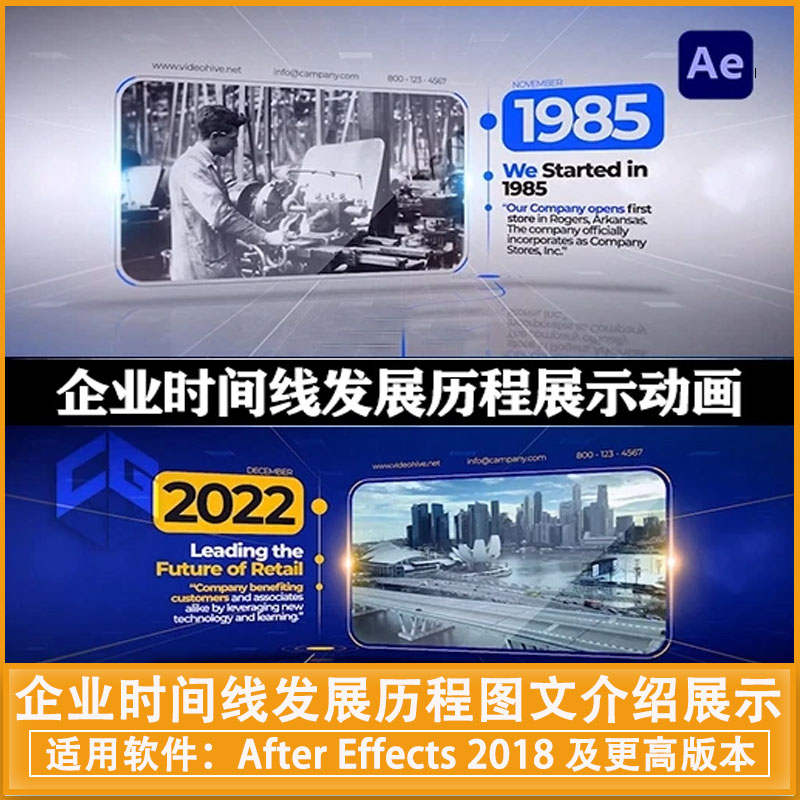 用于制作时间轴展示企业历程的重要事件,适用于公司介绍、年度报告和历史展示等。