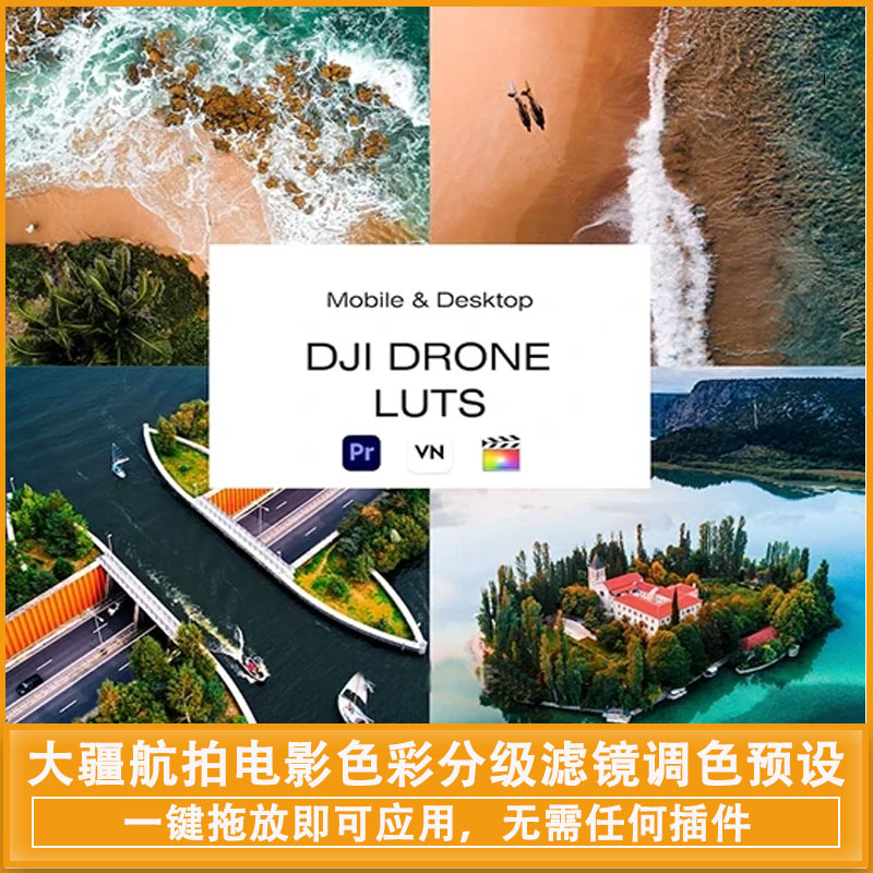 使用这套专为DJI无人机视频优化的专业LUT调色预设,让航拍素材瞬间提升到电影级质感!无论你使用的是DJI Mini、Air、Avata、Action、Pocket系列,还是其他支持 .cube LUT格式的软件(如 Premiere Pro、Final Cut Pro、DaVinci Resolve、VN Video Editor),都能轻松实现惊艳的色彩效果。