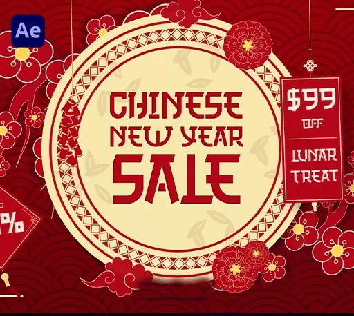 这是一款专为春节促销活动与电商折扣设计的视频模板。模板以传统春节元素(红灯笼、花卉、红金配色)为主题,让商品和活动信息在新春营销 中更加醒目、喜庆。