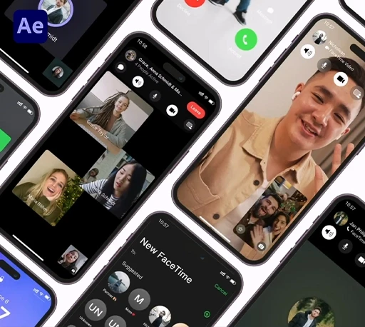 这是一款高度拟真的手机视频通话界面动画AE模板,专为制作Facetime风格视频通话画面、来电界面、通话拒接/接听动画以及社交媒体UI演示而设计。