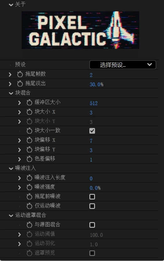 Pixel Galactic是一款由Pixel Sorter Studio开发的GPU加速将视频中的运动转化为迷幻的拖尾、故障回声和流动的像素失真效果插件。带来独特的数字噪声美学,完美适合音乐视频、VJ表演、广播电视和创意视觉项目。插件支持实时交互预览,内置多种预设,所有参数均可关键帧化。为视频创作者提供无限可能的故障艺术风格。