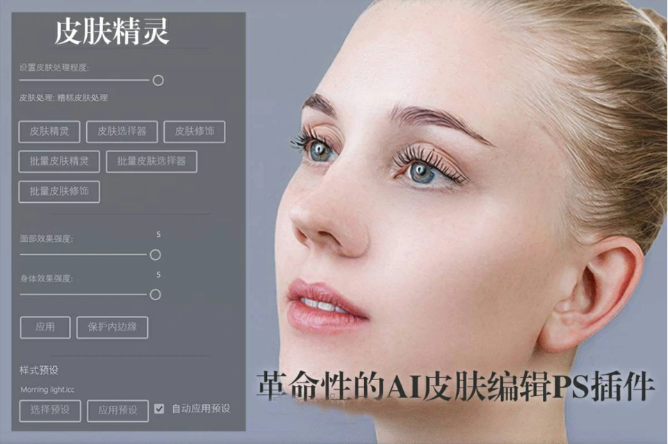 05105–皮肤精灵-革命性的AI人工智能一键快速批量磨皮修饰PS插件+安装视频教程