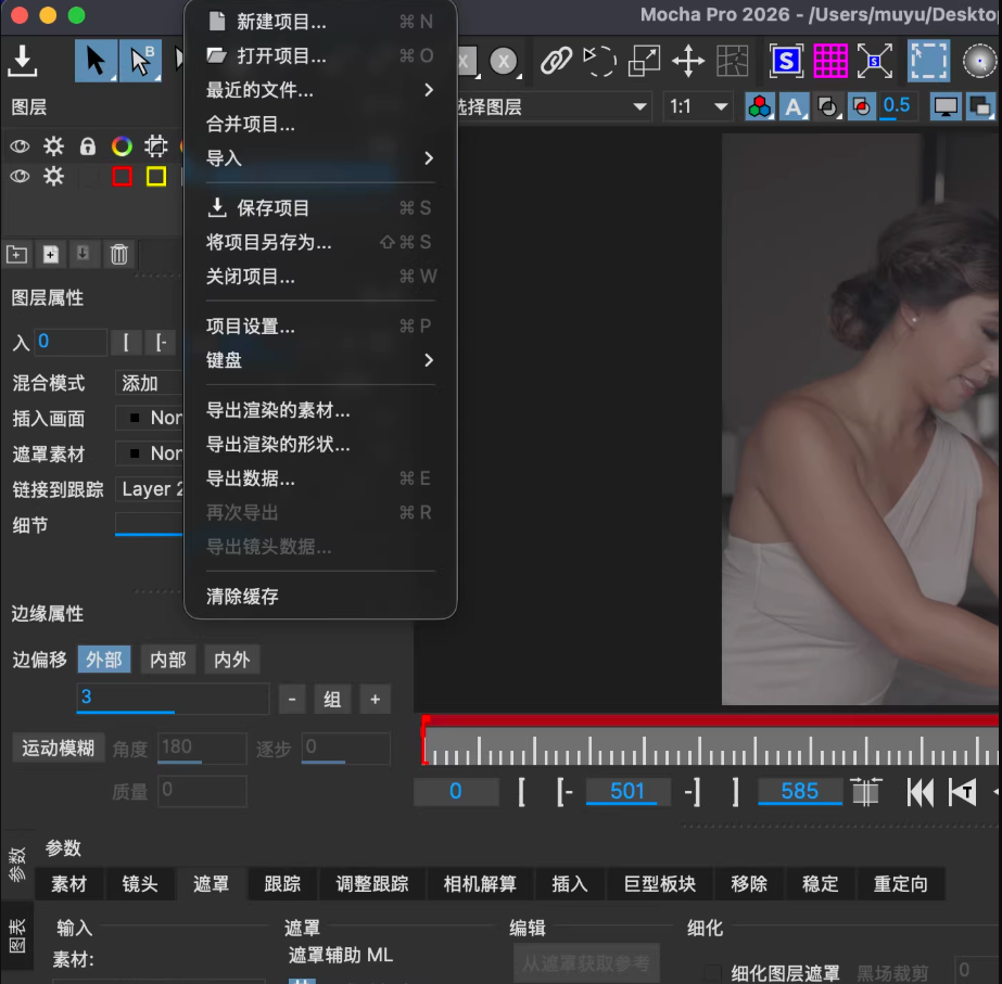 提供的是Mocha Pro 2026 For Mac独立软件中文汉化版下载。Mocha Pro 2026是一款世界知名的软件和插件,用于平面运动跟踪、3D 跟踪、动态观察、对象移除、图像稳定和 PowerMesh有机扭曲跟踪。新功能包括了提升的3D跟踪和相机解算、增强的跟踪和描边工具、性能优化、新的导出和集成选项、选择工具的新功能、图层描边工具、跟踪工具的更新以及扩展的渲染选项。这些更新使得用户可以更高效地进行复杂的视觉效果制作工作。