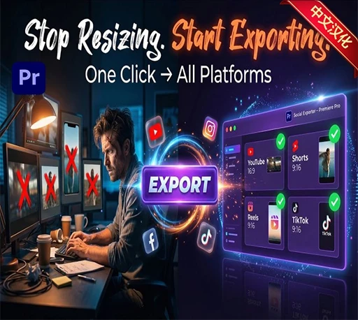 Social Exporter for Premiere Pro是一款专为多平台视频发布打造的高效导出脚本,帮助创作者摆脱重复调整画幅与重建时间线的繁琐流程。只需一次剪辑,即可快速生成适配YouTube、Shorts、TikTok、Reels、Facebook 等平台的多版本视频。脚本内置智能缩放、多种背景填充以及专业水印系统,支持图片、视频与文字品牌标识,让不同尺寸输出依然保持统一视觉风格。结合Adobe Media Encoder实现批量导出,大幅提升内容制作与分发效率,是短视频创作者与商业项目交付的必备工具。